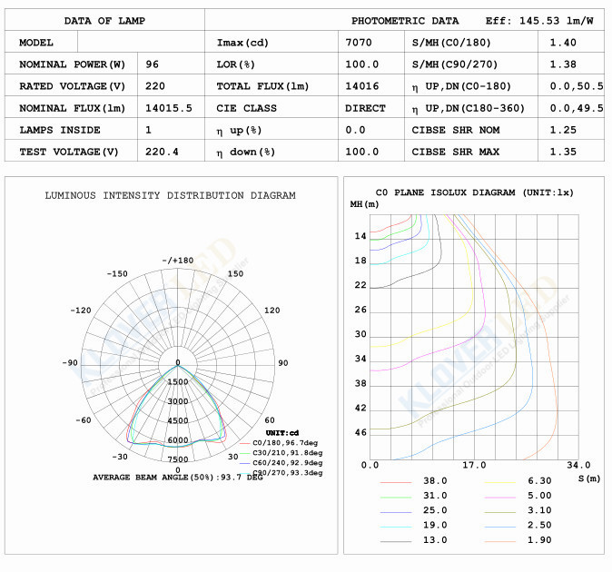 Total Lumen: >20,000lm, 130lm/w