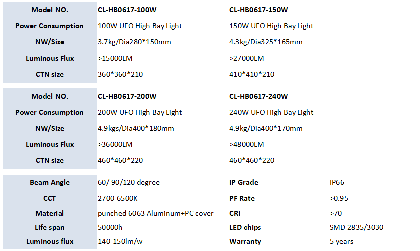Item Name: Water proof IP65 IK08 Aluminum housing 100W 150W 200W UFO high bay light 5 years warranty